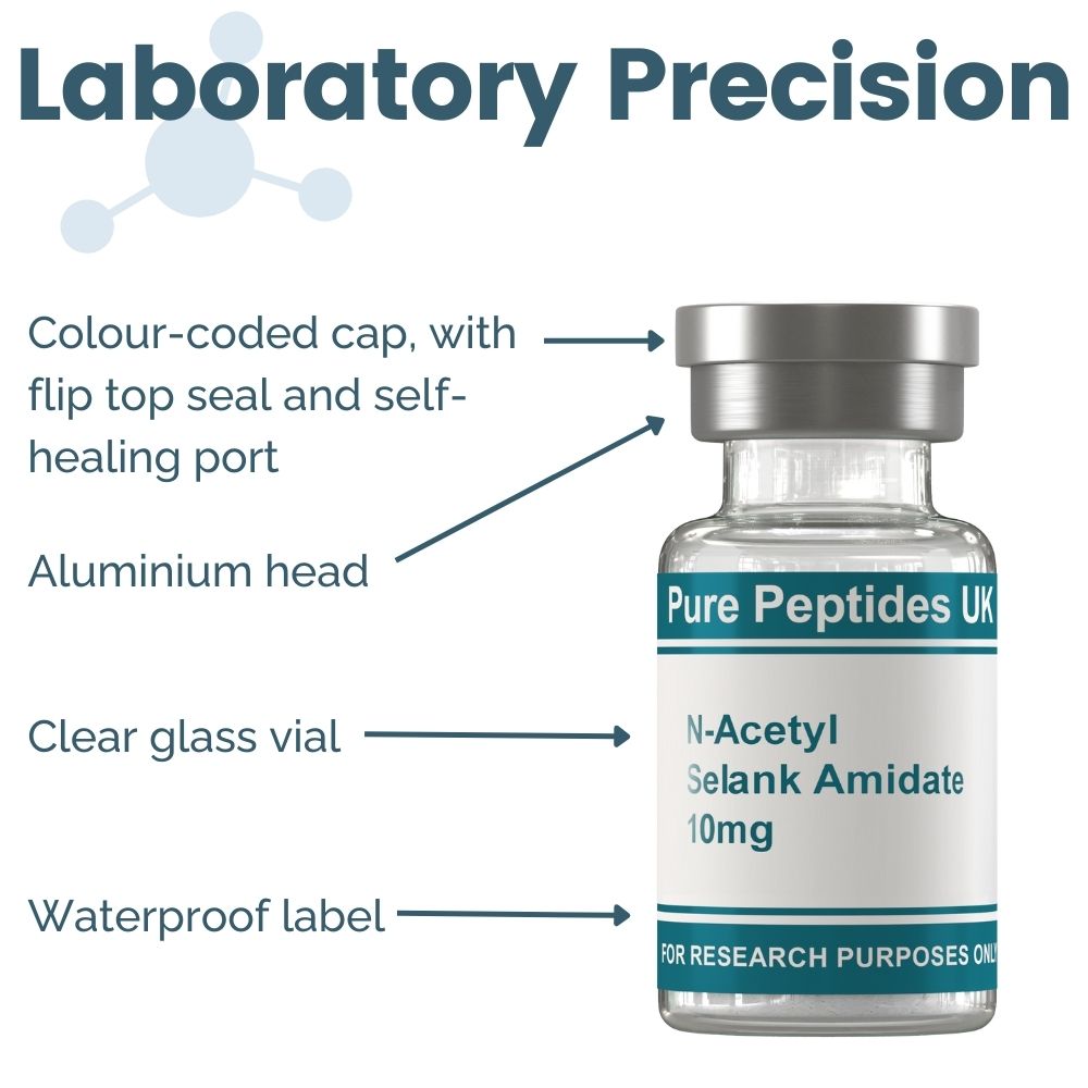 Usage: Product is prepared for LABORATORY RESEARCH ONLY. N-Acetyl Selank Amidate for sale at Pure Peptides UK is limited to scientific research and education only – Only buy N-Acetyl Selank Amidate if you are a licenced researcher.